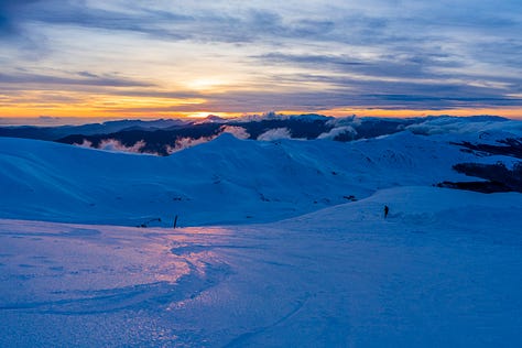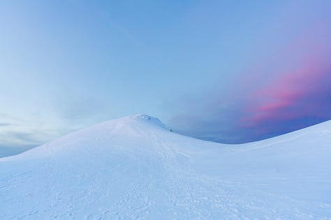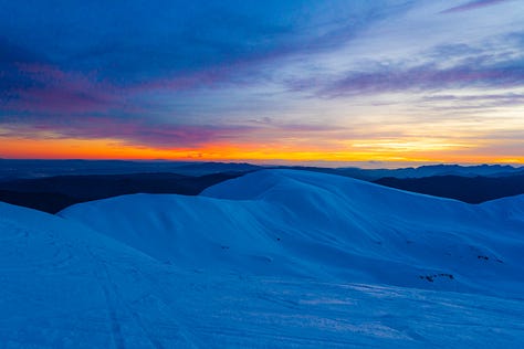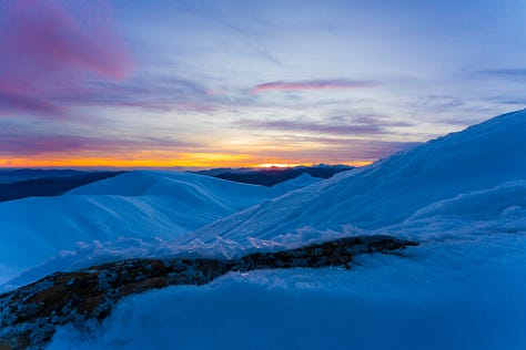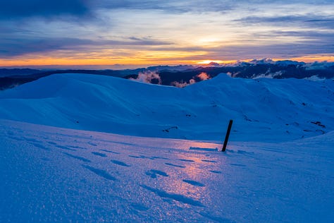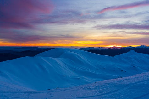Il riflesso acceso sul terreno ghiacciato mi ha ricordato con nostalgia la Groenlandia che ho visitato quest’estate. Avevamo ammirato un tramonto simile sulla sua calotta.